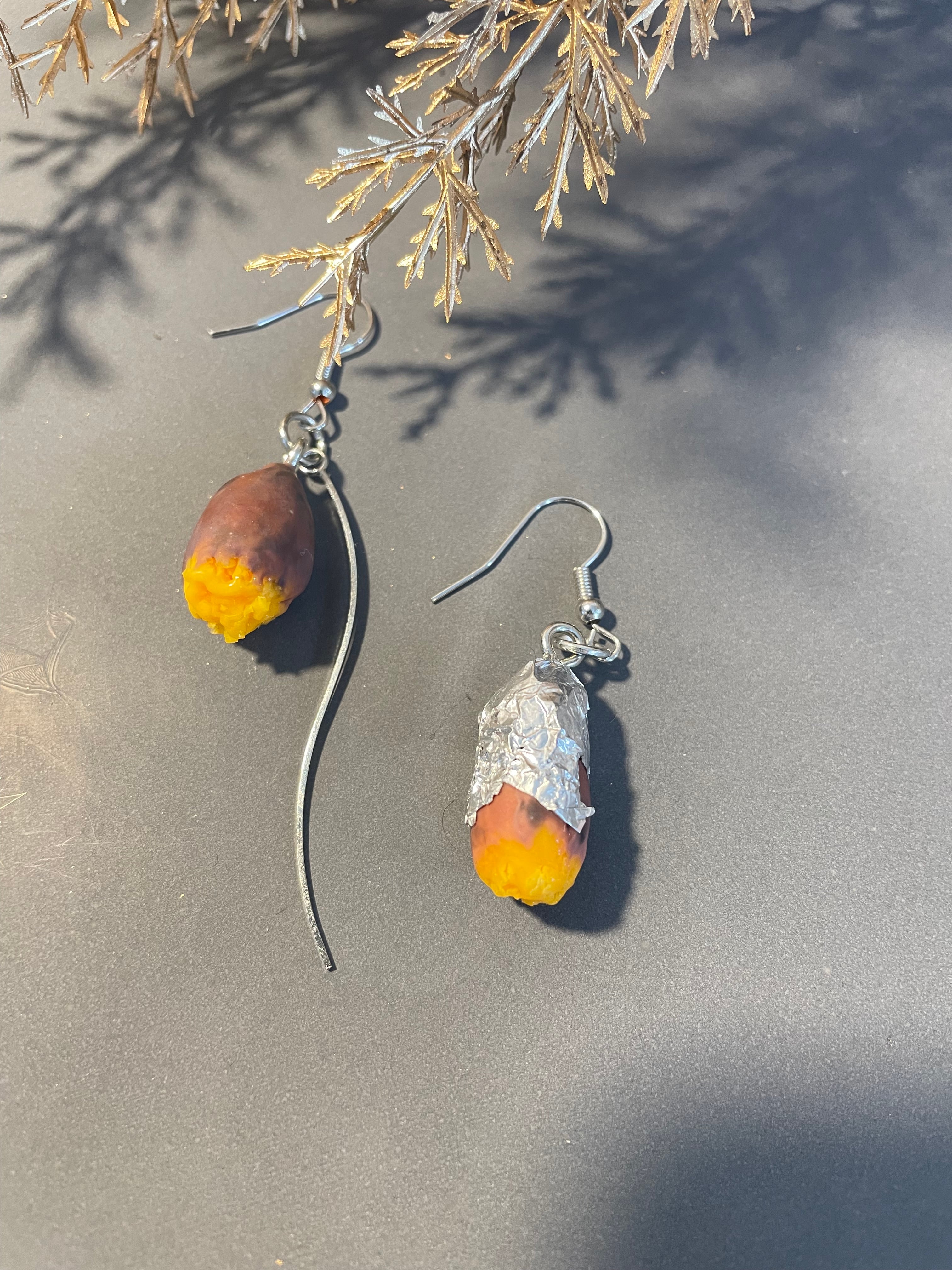 一年熟成とろ焼き芋の質感をそのままに、耳元から秋を感じる『焼き芋ピアス』です。
